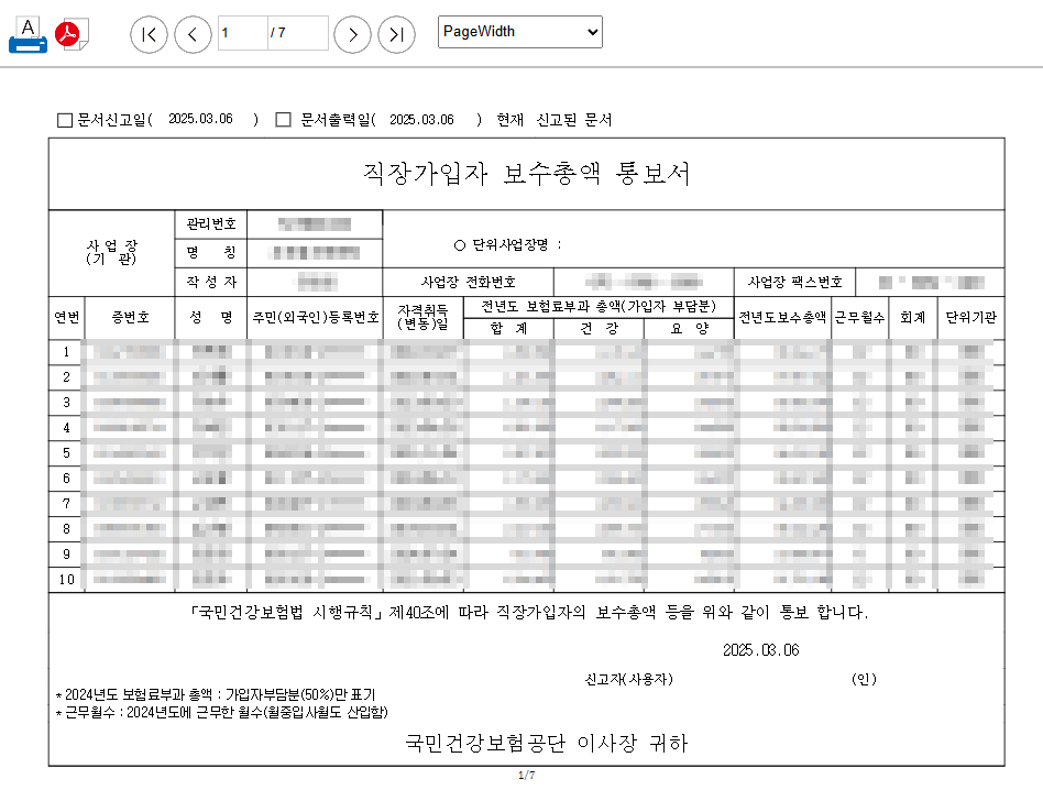 최종적으로 [직장가입자 보수총액 통보서]에서 보수총액 신고가 완료된 것을 확인할 수 있습니다.