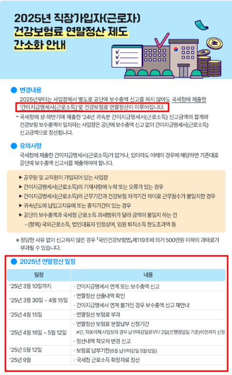 연말정산과 지급명세서 제출이 마무리된 후, 이제 건강보험료와 관련된 연말정산을 진행해야 합니다.
