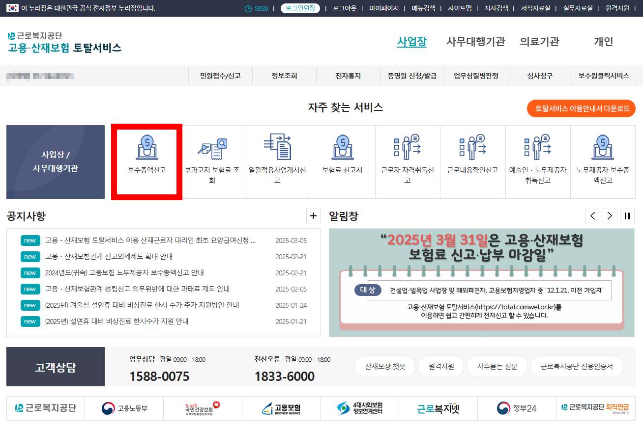 1. 고용산재보험토탈서비스 접속 및 로그인