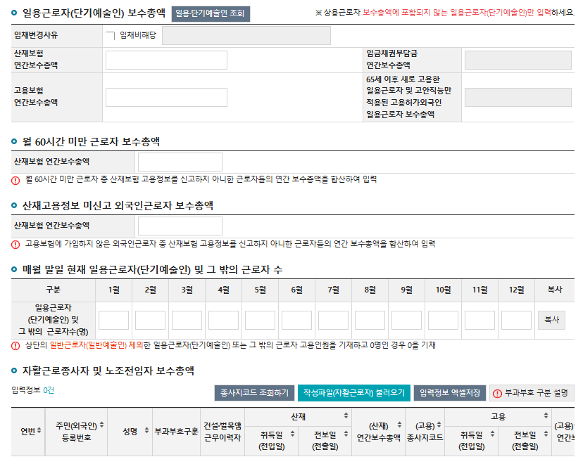 다음과 같은 특수 근로자에 대해서도 보수총액을 입력해야 합니다: